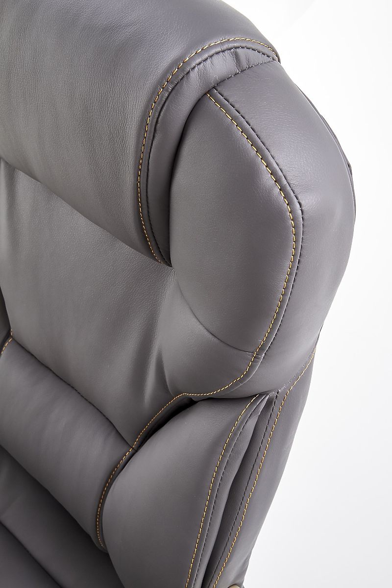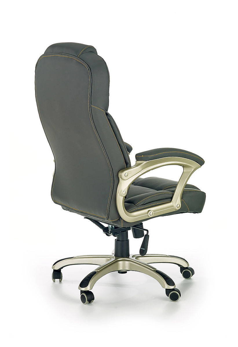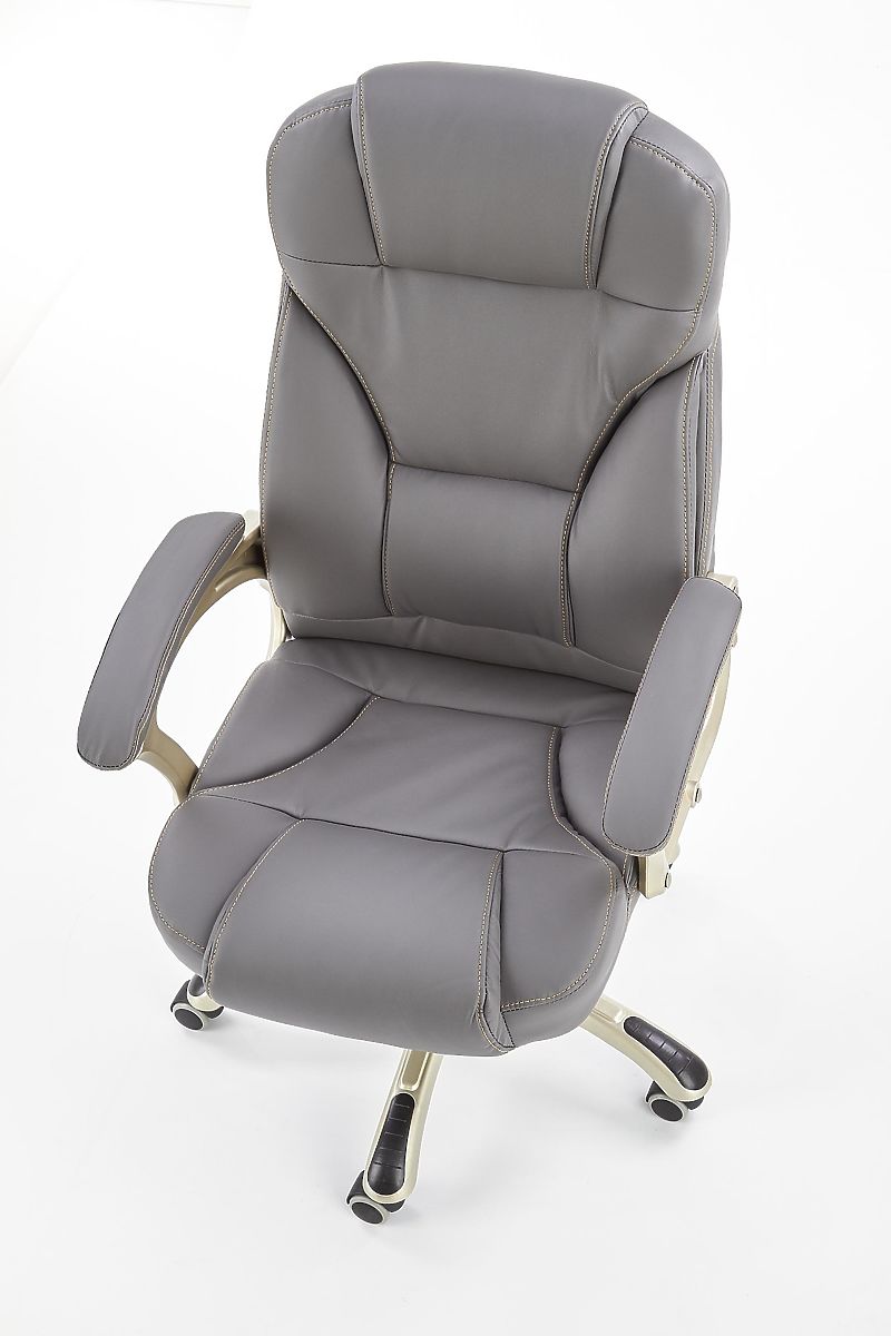 Grey eco leather office chair with rubber-covered wheels. .. more
