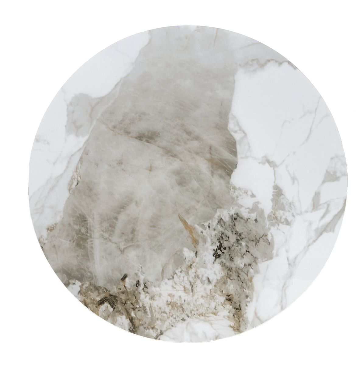 Ceramic and steel table with a marble, walnut, and gold finish. .. more