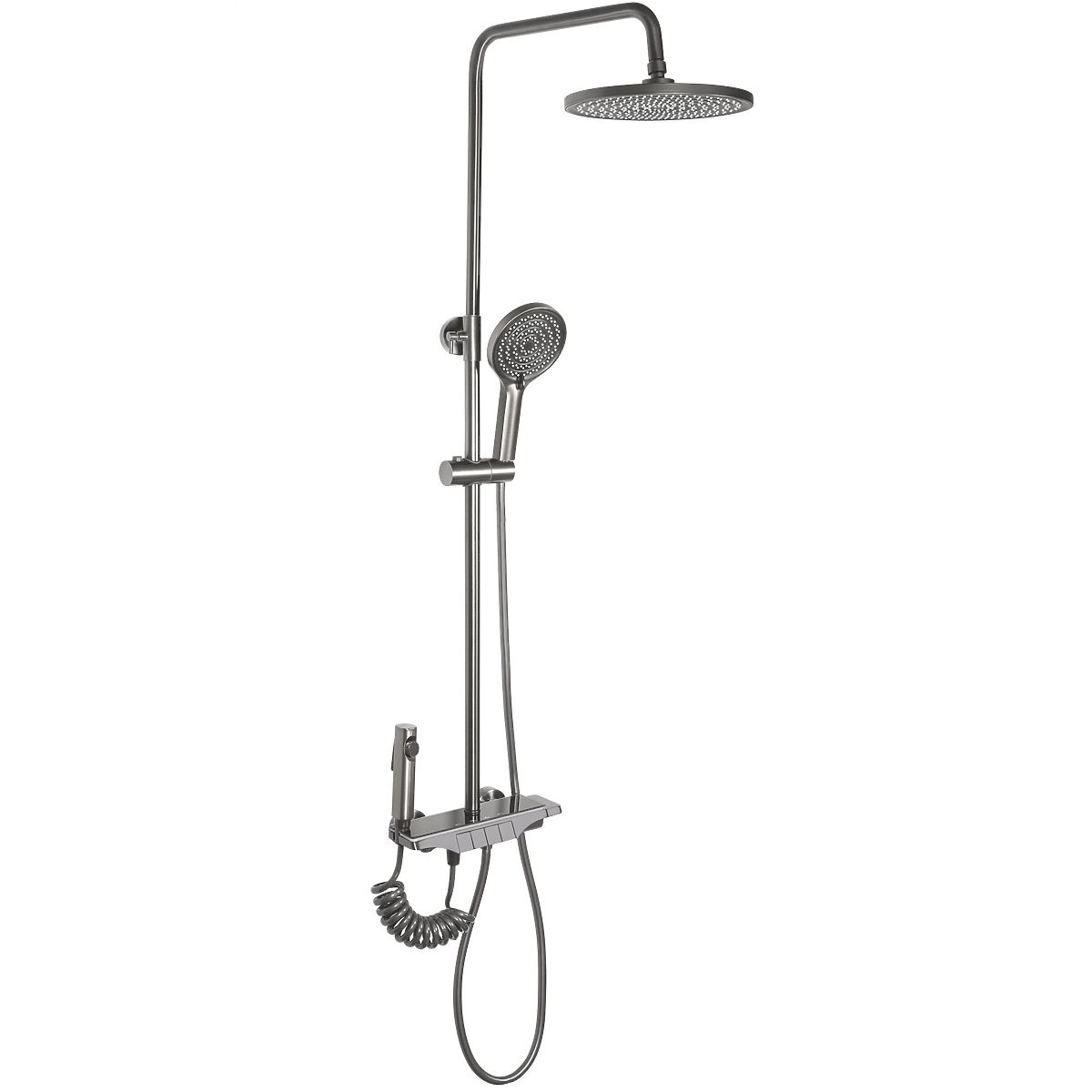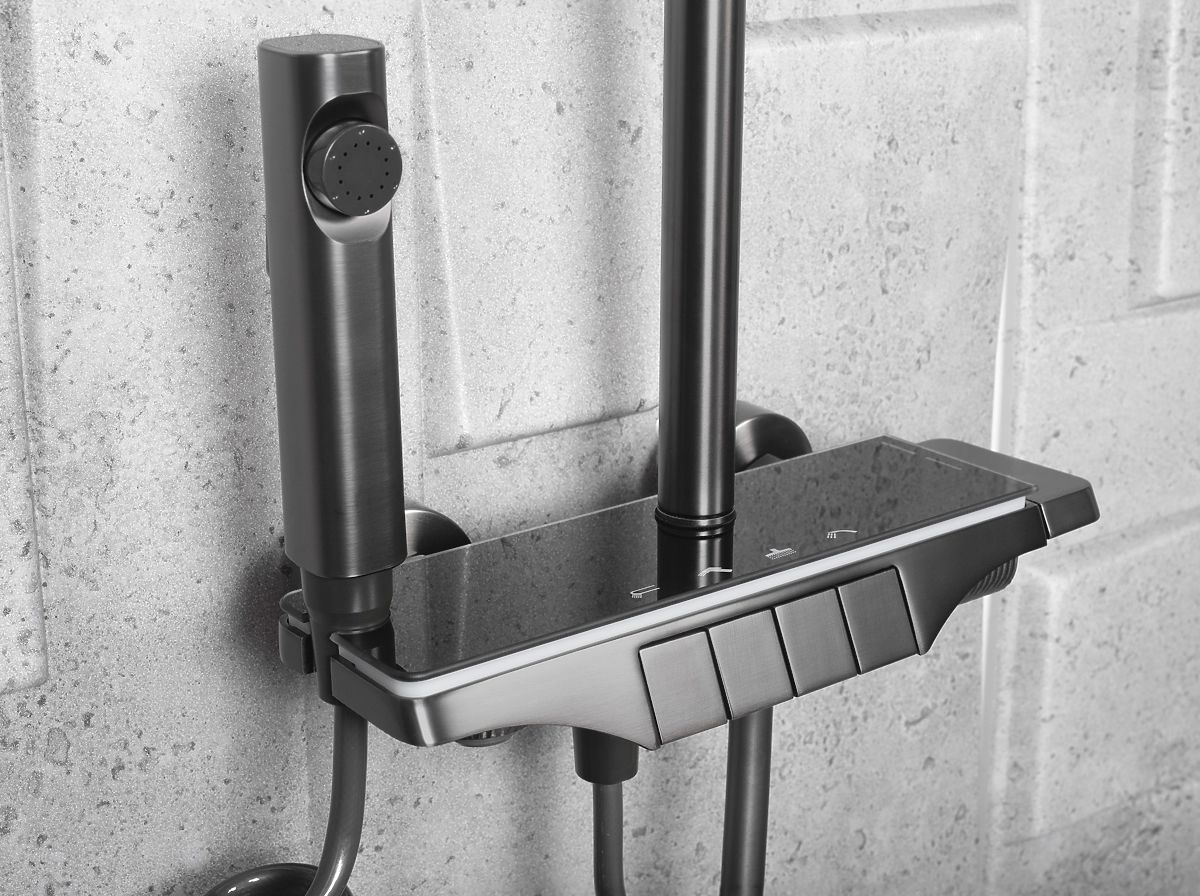 Savio Titan Shower Set The Savio shower set was designed with comfort and functionality in mind. We used top-notch and the best technologies during production to ensure maximum safety and comfort for everyday use. The modern and unique design and high quality of the materials used guarantee long-lasting durability and reliability. The Savio set features a built-in LCD display that provides users with constant access to current water temperature information, allowing for quick and precise adjustment to individual preferences (the display does not require connection to the power grid). The faucet has blue LED backlighting. The spout in the shower set is fixed. The presented shower set does not have water pressure regulation.