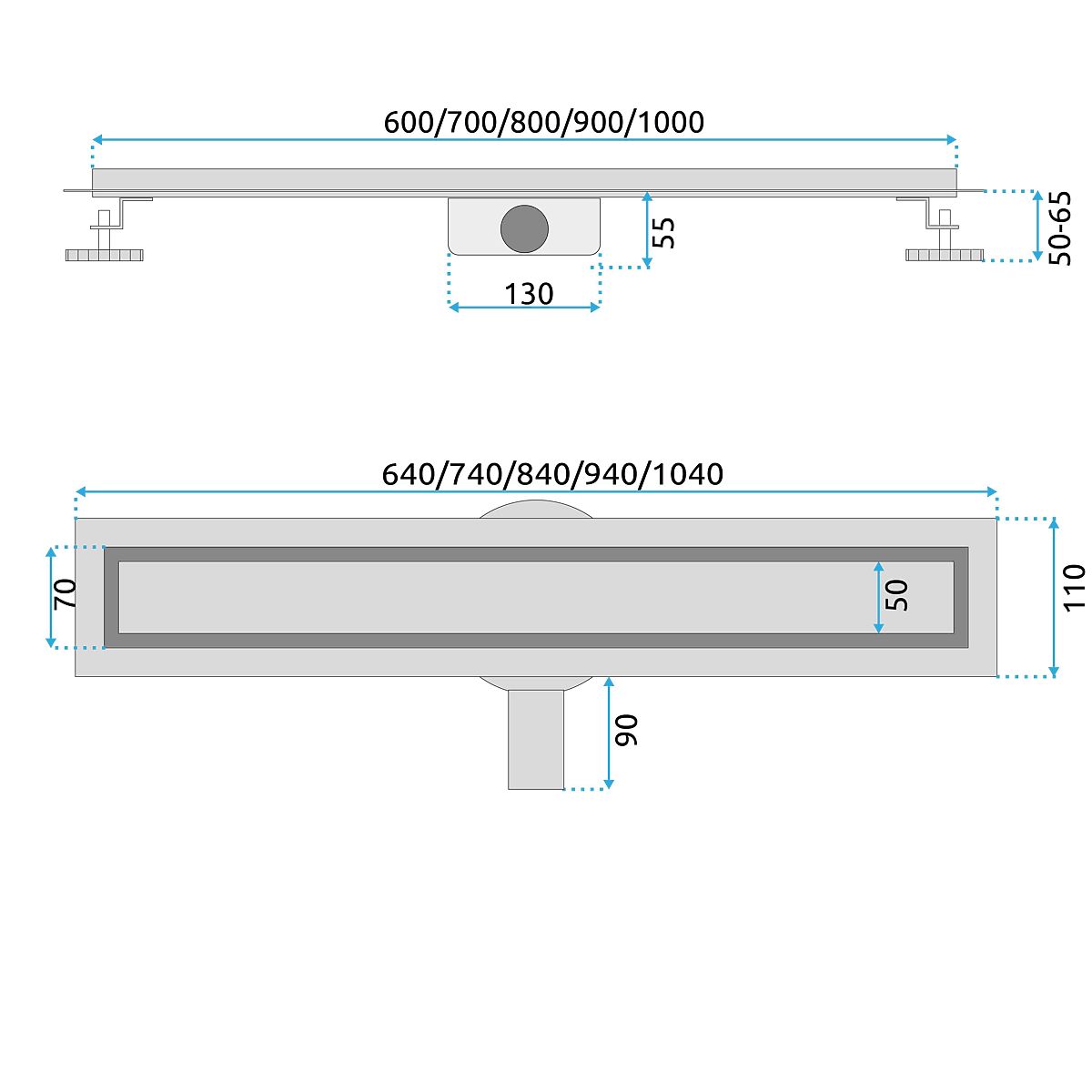 The Neox linear drain is a modern replacement for traditional shower trays. It offers an elegant appearance and allows for easy maintenance of cleanliness in the bathroom space. It perfectly fills your bathroom area, maintaining a flawless look and interior aesthetics. The drain is made from the highest quality stainless steel Aisi 304. The drain cover is double-sided, allowing us to choose between two surface finish versions – aluminum or inserted tile, which enables customization of the surface finish type for any bathroom. The linear drain is equipped with a dry siphon.