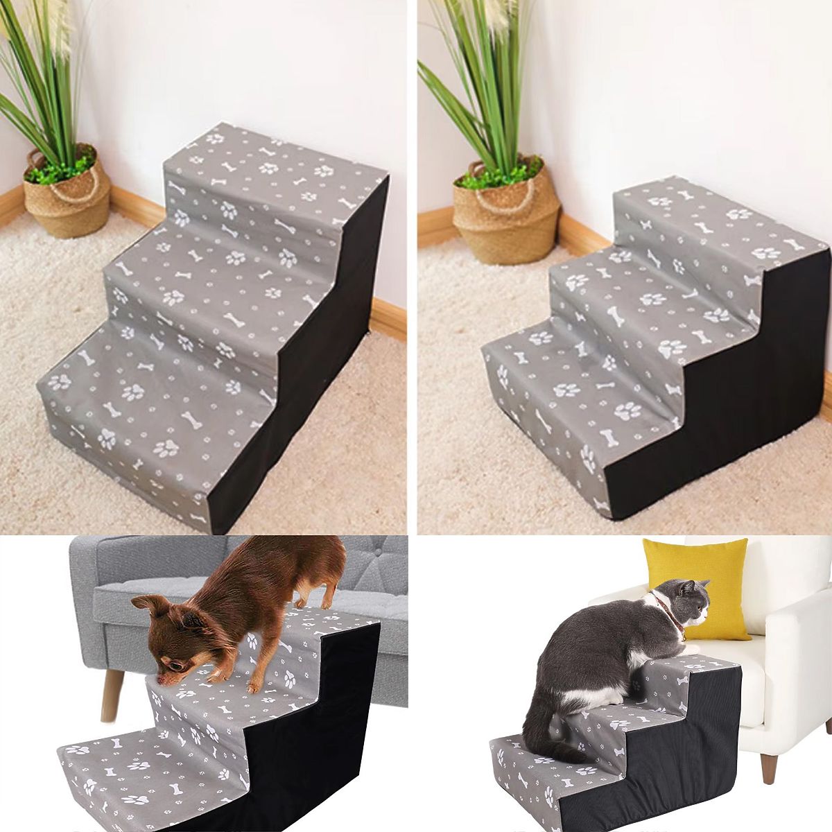 Pet stairs are a practical and convenient solution for your pet. With three stable steps, they allow easy and safe climbing onto a sofa, bed, or other elevated surfaces. Made from durable materials, they are lightweight yet sturdy, providing comfort for both small dogs and cats. The classic black design fits perfectly into any interior. The cover can be easily removed and cleaned, making it easy to keep the product clean.
