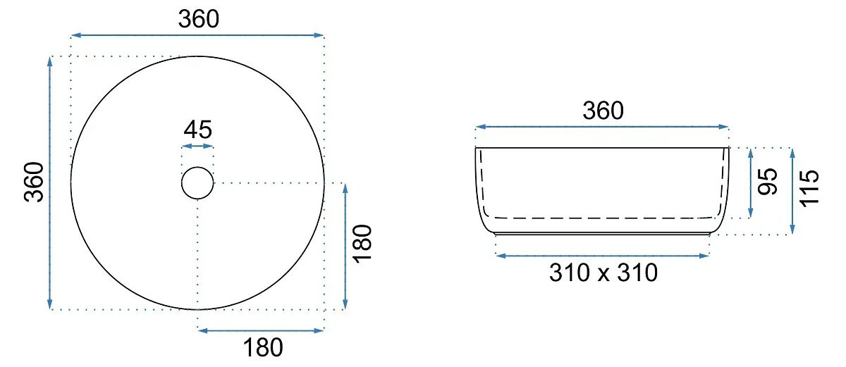 The smooth, durable surface makes it easy to maintain the washbasin in impeccable cleanliness, and the ergonomic bowl ensures comfort in daily use. The washbasin is suitable for installation on both a countertop and a bathroom cabinet, allowing easy adaptation to your space.