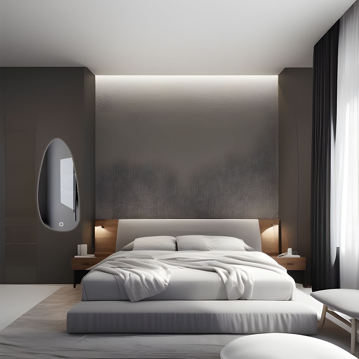 Longitudinal LED mirror with an organic shape and touch switch. .. more