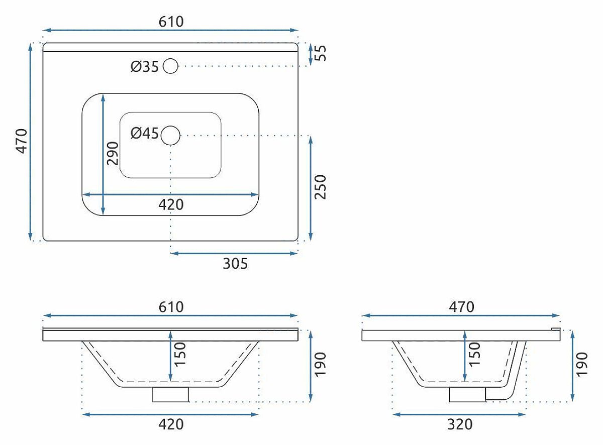 The set includes a ceramic sink with a tap hole, sized to fit the lower cabinet. Its universal form blends well with the rest of the set, creating a unified and aesthetic whole. Mario is a set that offers a cohesive look and practical solutions – ready for assembly and immediate use in any modern bathroom.