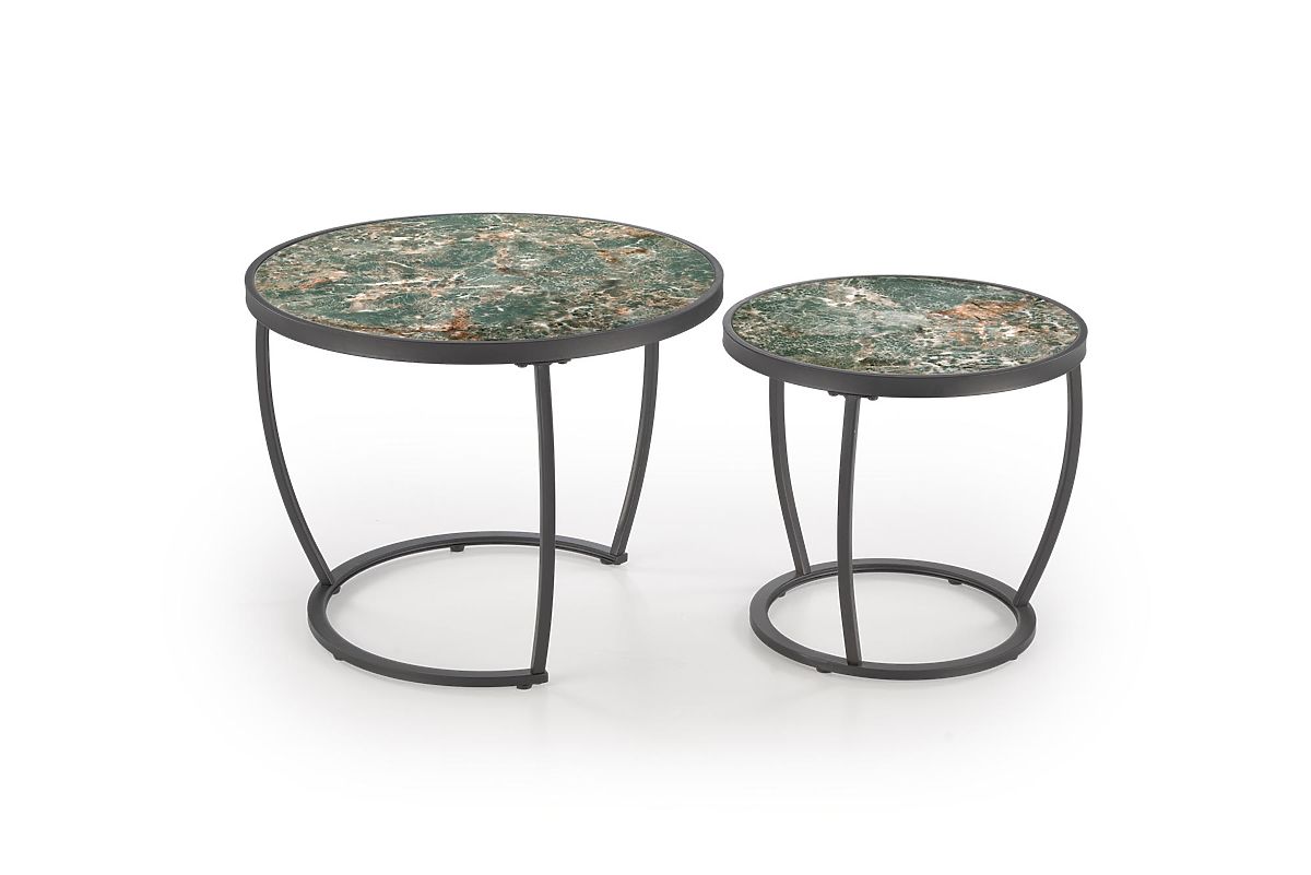 Lukahome.co.uk » Stoly a stolky / Konferenční stolky / INES set of 2 tables, green marble / black (1p=1set)