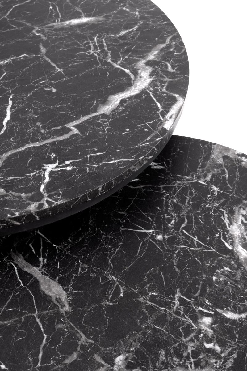 Set of 2 benches in black marble and black finish. .. more