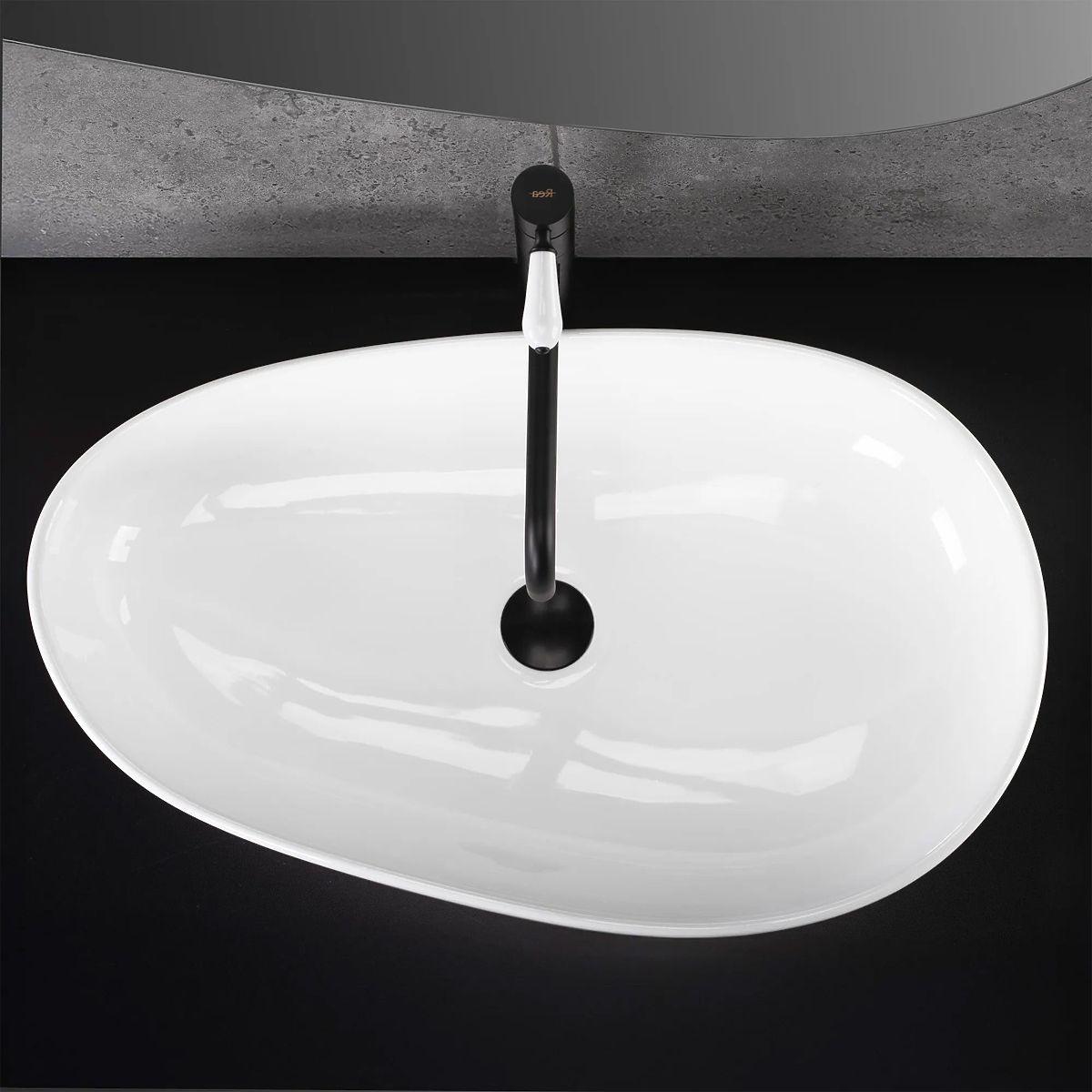 Sandra is a washbasin that is mounted directly on the countertop, allowing for space-saving bathroom organization. Its interesting shape, resembling an irregular teardrop, adds a subtle yet exceptional accent to the bathroom.