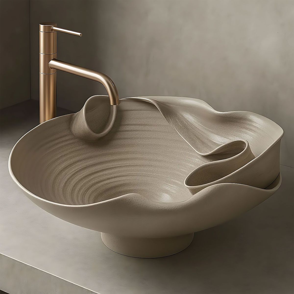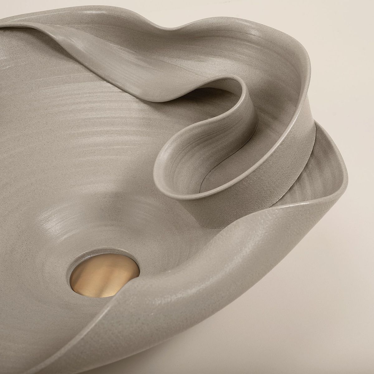 The featured washbasin is a new addition to the Rea brand's offering – Bathroom with Imagination, designed for individuals seeking exceptional shapes and authentic craftsmanship. It belongs to the Hand Made Art collection – a series in which each piece is handcrafted with full attention to detail. The absence of mass production ensures that each washbasin slightly differs in shape and texture, maintaining a unique character. This model is a bold form inspired by the movement and tension of the material. Spiral fractures resemble natural rock deformations, a wave, or a rolled ceramic sheet. The distinctive, almost sculptural shape makes the washbasin a focal point of the bathroom – not only functional but also artistic. The raw texture, gray-beige color, and matte finish create a harmonious whole with modern materials: concrete, steel, stone, and glass. It is an offer for those who expect more – originality, quality, and a form that does not remain indifferent. See how our washbasins are made: