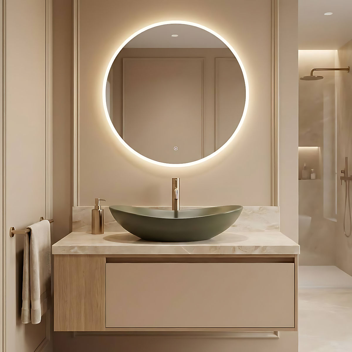 The matte surface in an olive shade is resistant to scratches and stains, while also being easy to clean. Its simple shape and unusual color make the sink a timeless element that perfectly highlights the character of the interior and gives the bathroom a unique style.