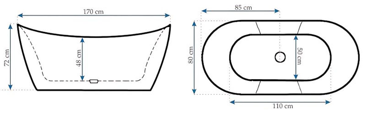 The bathtub is designed for installation as a freestanding unit anywhere in the bathroom. It is made from high-quality white acrylic, resistant to scratches and damage. Thanks to a special manufacturing process, the surface is durable and easy to maintain, retaining its aesthetic appearance for many years.