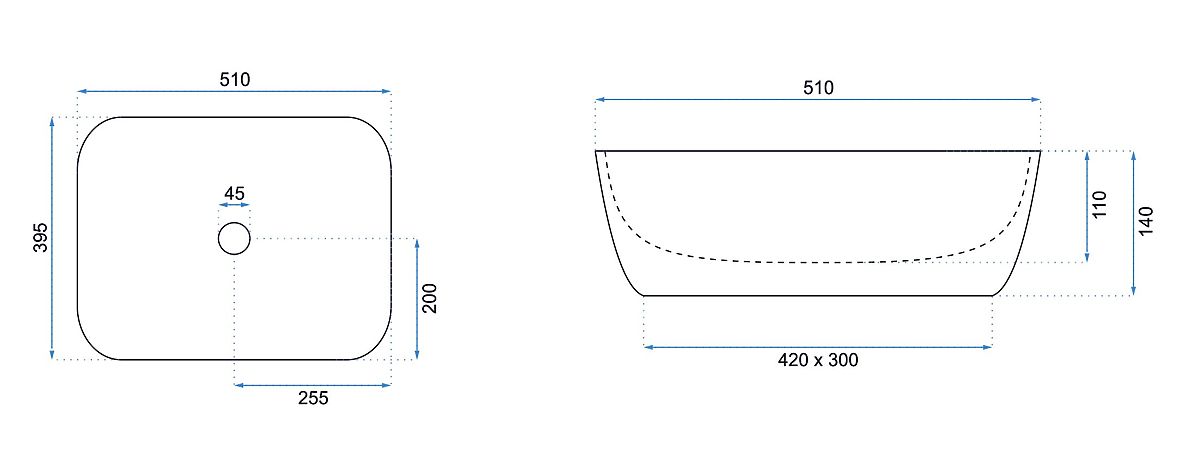 The washbasin is suitable for installation on a countertop or cabinet. It is made of high-quality sanitary ceramic. Due to a special production phase, it is durable and easy to keep clean.