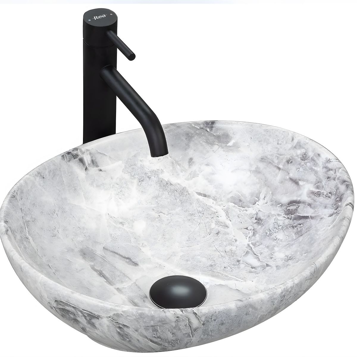 We present to you the new model of the very popular Sofia washbasin in our offer. The washbasin is made from the highest quality sanitary ceramics, which is very durable and easy to clean. It has been specially styled in a marble design, contributing to an amazing effect in any bathroom. The washbasin is adapted for installation on a countertop or cabinet. It perfectly matches any color of the base on which it will be mounted.