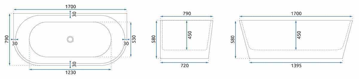 Acrylic Wall-Mounted Bathtub OLIMPIA 170 cm