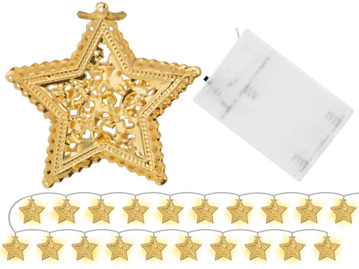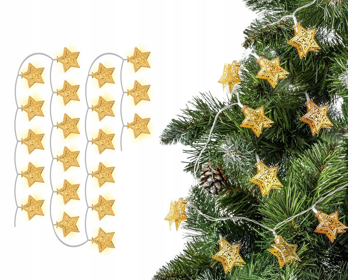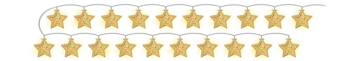 The set of lights consists of 20 hanging LED stars with a diameter of 4.5 cm. The total length of the garland is 3 meters.