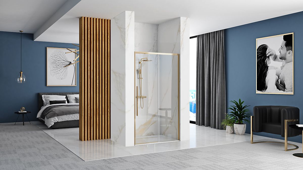 Solar Gold are striking yet timeless and modern shower doors, made from the highest quality materials and finished with a gold laminate. The gold surface is resistant to dirt and stains and is easy to maintain. The combination of gold profiles, long handle, and hinges along with the clear line of glass surfaces perfectly suits both modern and traditional bathrooms.