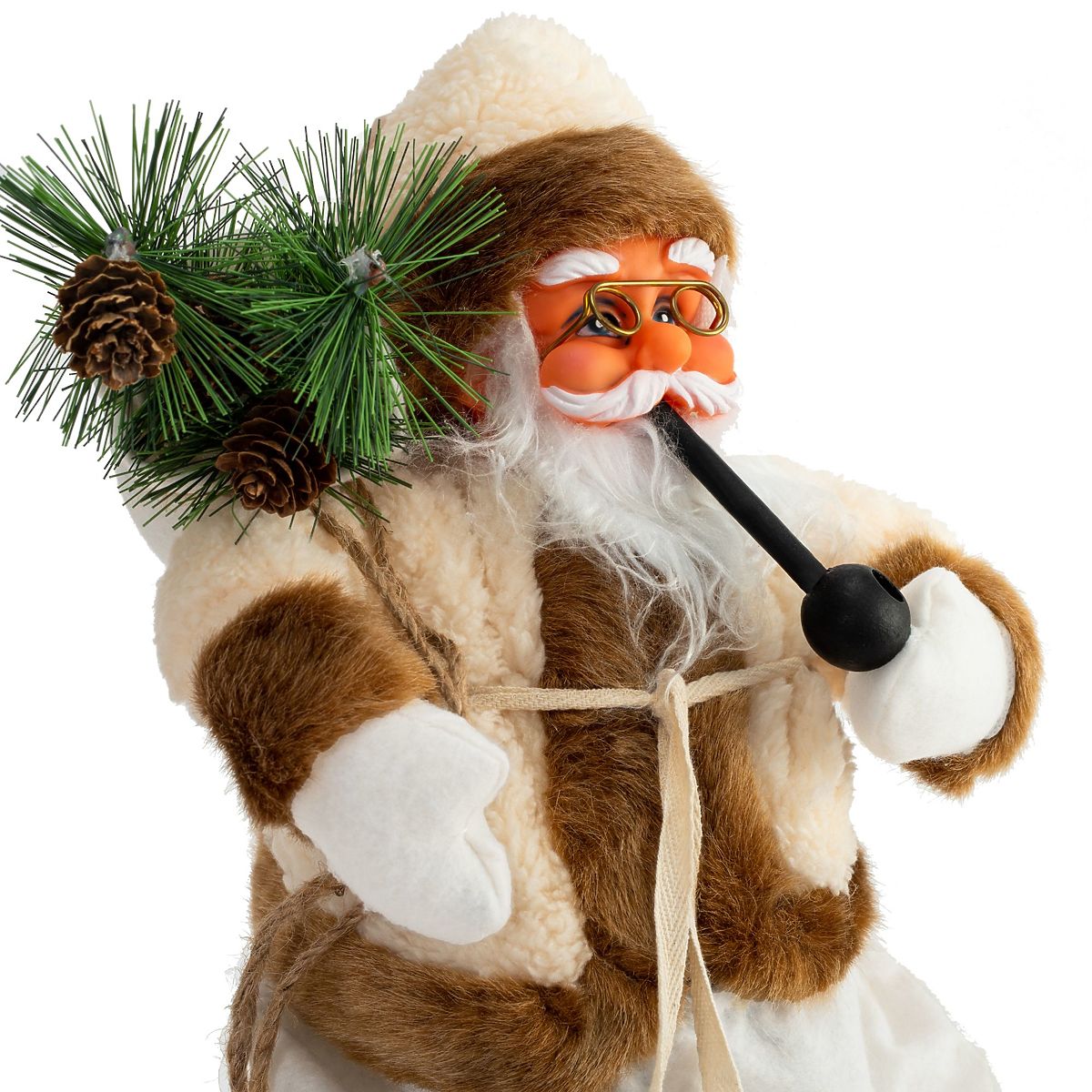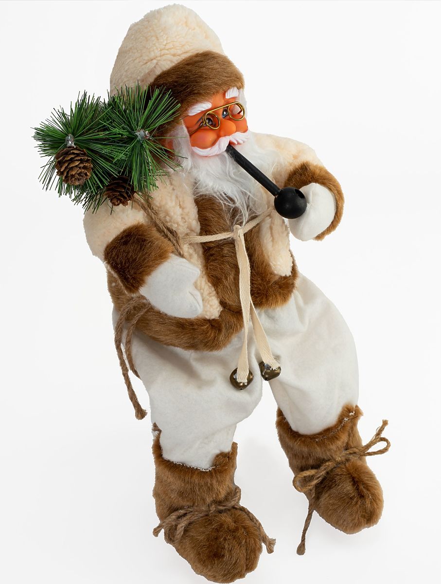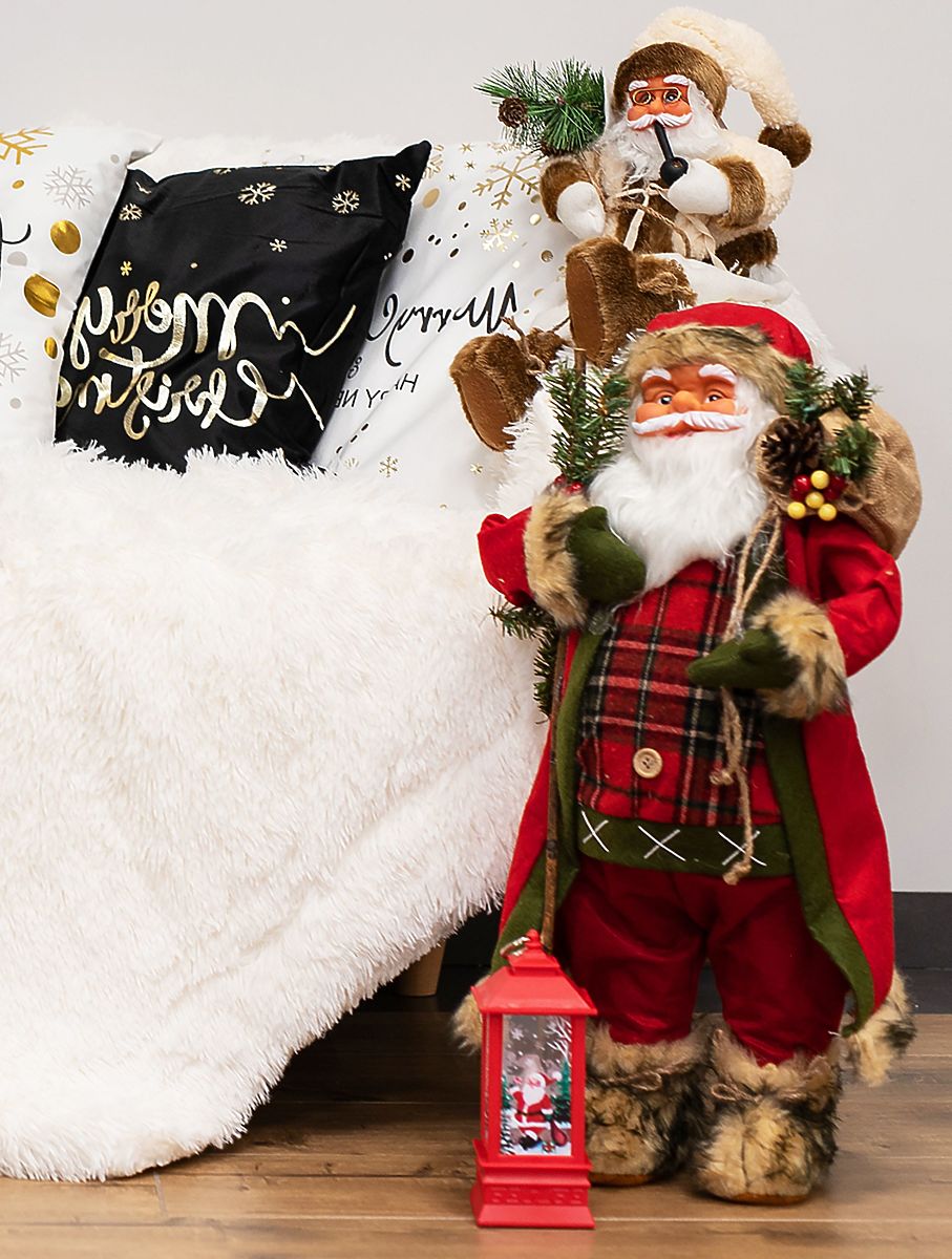 A beautiful sitting figure of Saint Nicholas is a great decoration for your home, bringing the Christmas atmosphere to your household. Nicholas has small bells, a pipe, and a bag with a tree and cones. The figure is made of plastic and covered with pleasant cotton clothing, ensuring durability and high-quality craftsmanship. It has a stable construction and high-quality craftsmanship.
