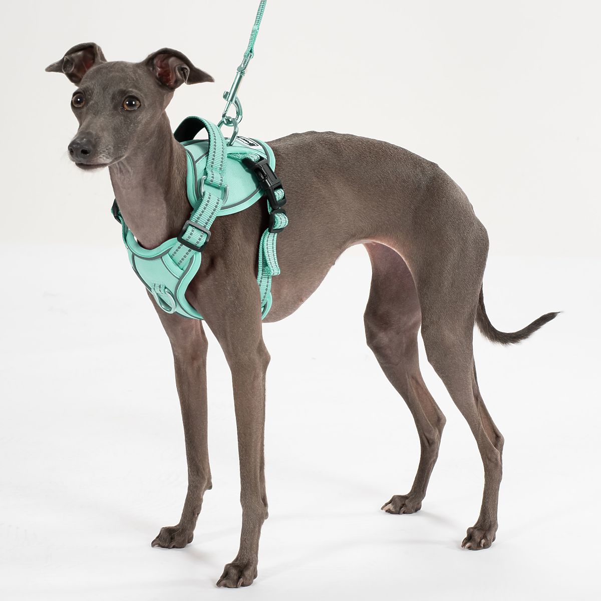 Reflective dog leash and harness set in green. .. more