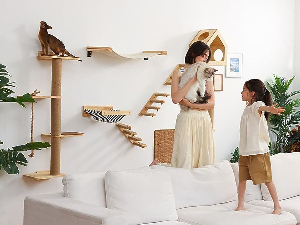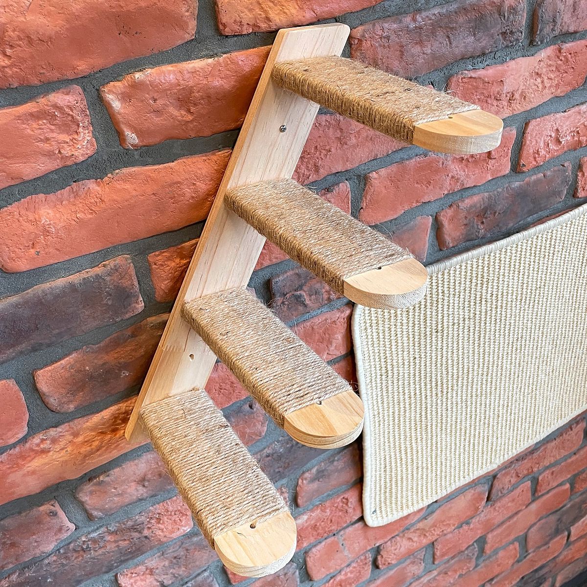 Introducing our durable and aesthetic wall-mounted steps for cats. They are an ideal place for claw sharpening, but also serve as a play area for your cat. The steps can be combined with other wall elements to create a play track for our furry four-legged friends. Thanks to the use of high-quality materials, the scratcher will bravely withstand cat claws and serve for a very long time.