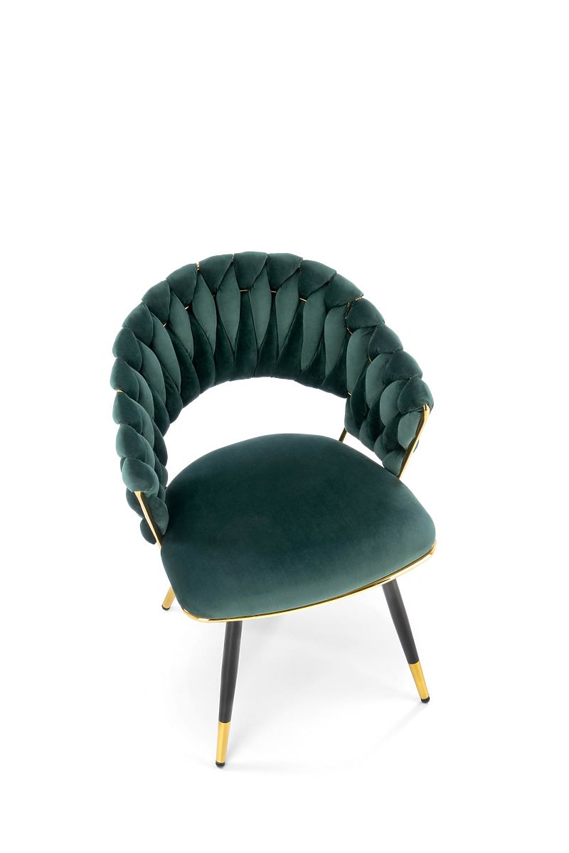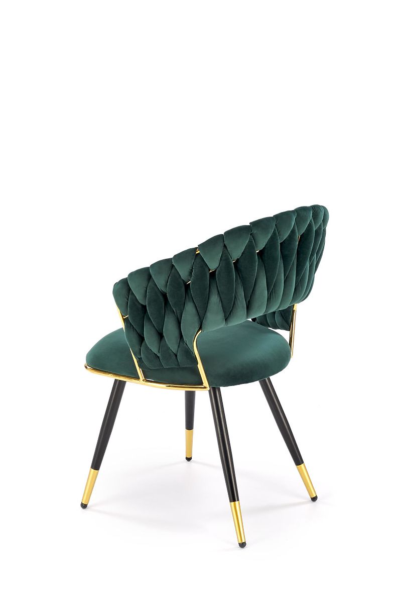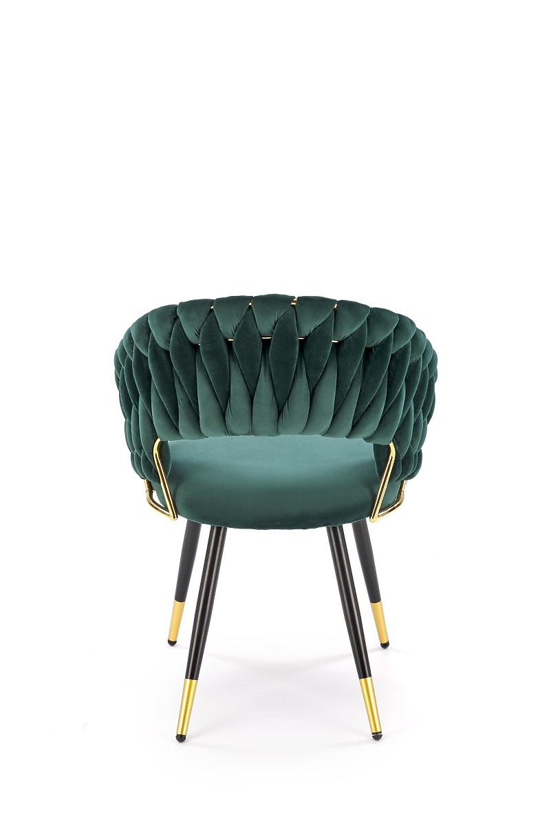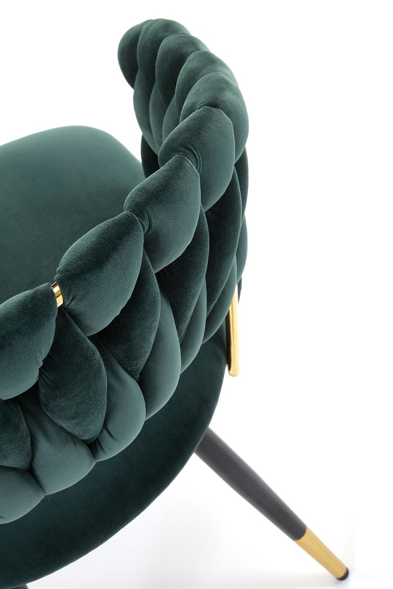 Dark green velvet chair with gold accents. .. more
