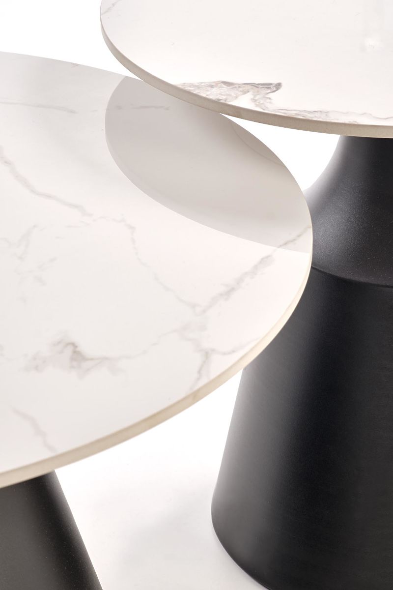 Lukahome.co.uk » Tables and coffee tables / Coffee tables / MAGNETA Set of 2 Benches, White Marble / Black (2pcs=1set)