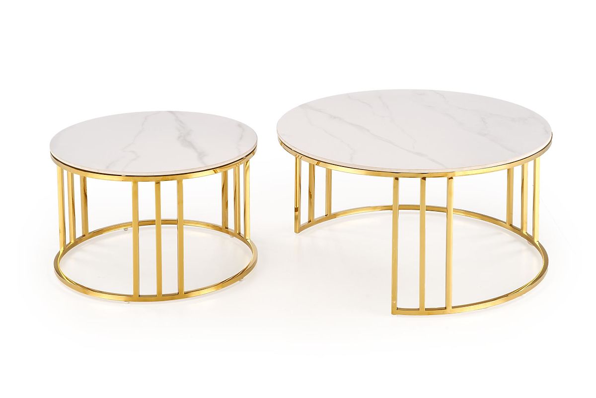 Lukahome.co.uk » Stoly a stolky / Konferenční stolky / MERCURY 3 set of 2 benches, color: white marble / gold (2p=1pc)