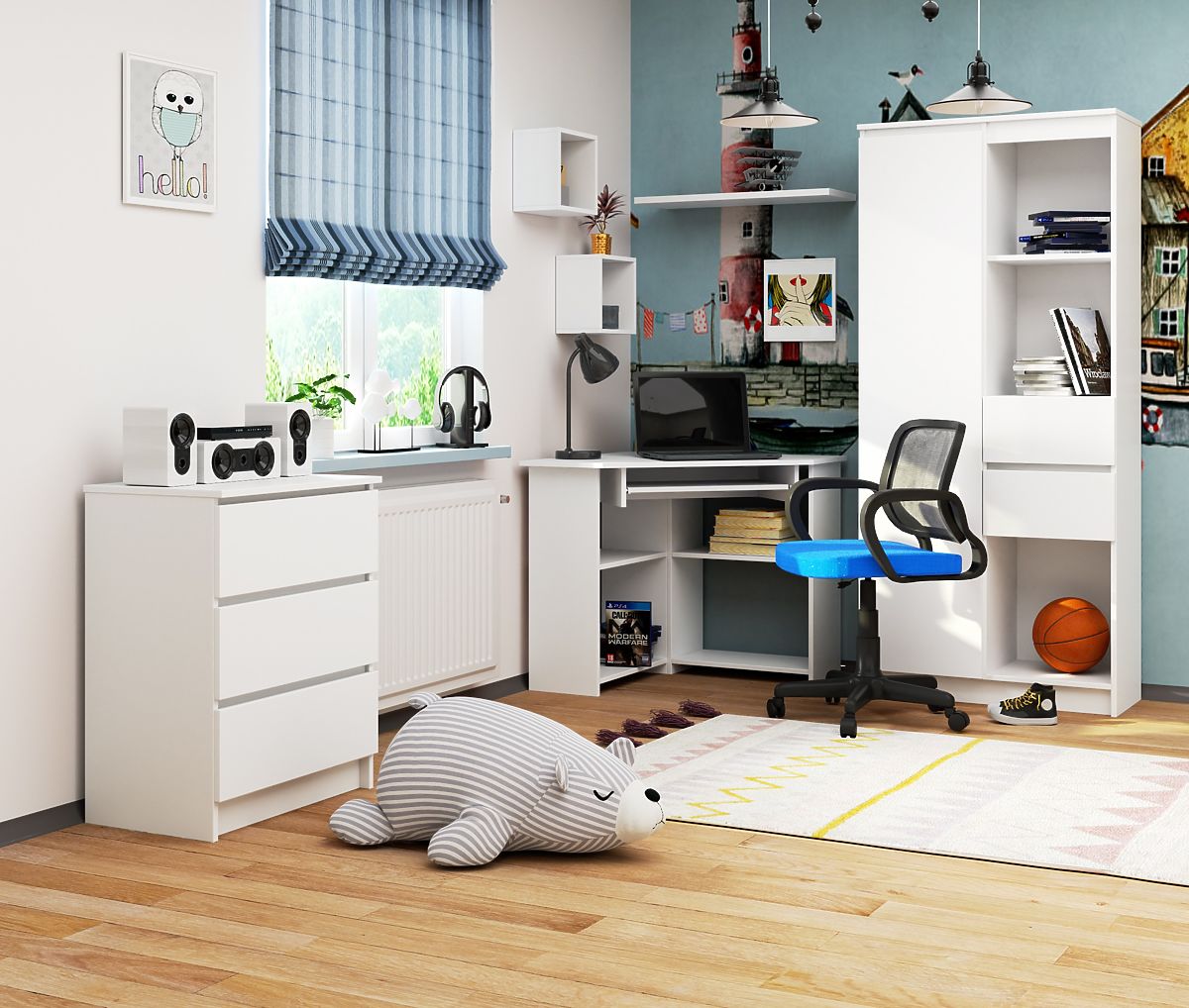 Expecting comfort while working from home? Need a new desk to meet your requirements? Choose a model that is perfectly suited for use with a desktop computer. Our store offers a model equipped with space for a keyboard and the main part of the computer. Additionally, the worktop has enough space for comfortably placing a monitor, notebook, or pens. The corner computer desk saves a lot of space in a room or office. You can rely on high durability, thanks to the 16 mm laminated board it is made of. The board is abrasion-resistant, which increases the lifespan of the entire structure, and its appearance will remain like new for a long time.