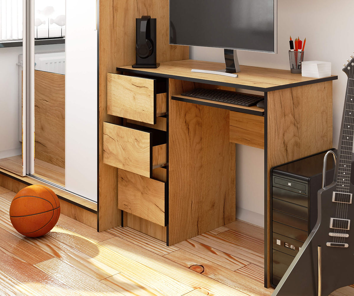 The writing desk from our offer is characterized by excellent quality. It will serve for many years and will long present itself as new. However, the most important thing is that it is functional and helps to organize the space for learning and working well. The furniture is intended for self-assembly, aided by instructions included with each order.