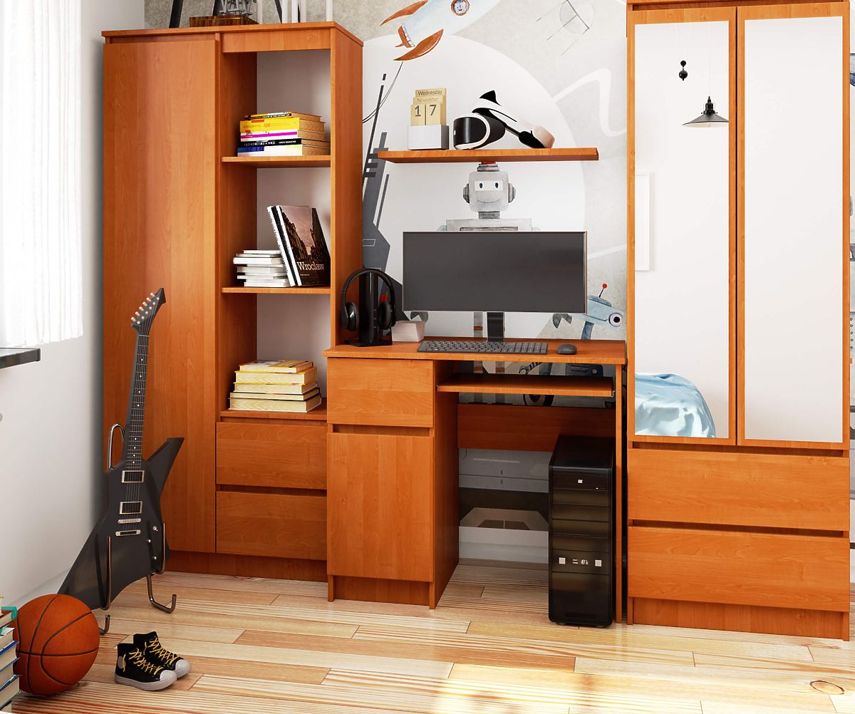 The Piksel desk is a small desk with a large amount of space for essential school items. Thanks to the door, it can hold plenty of notebooks and books. The desk is 90 cm long and is perfect for small and medium-sized rooms.