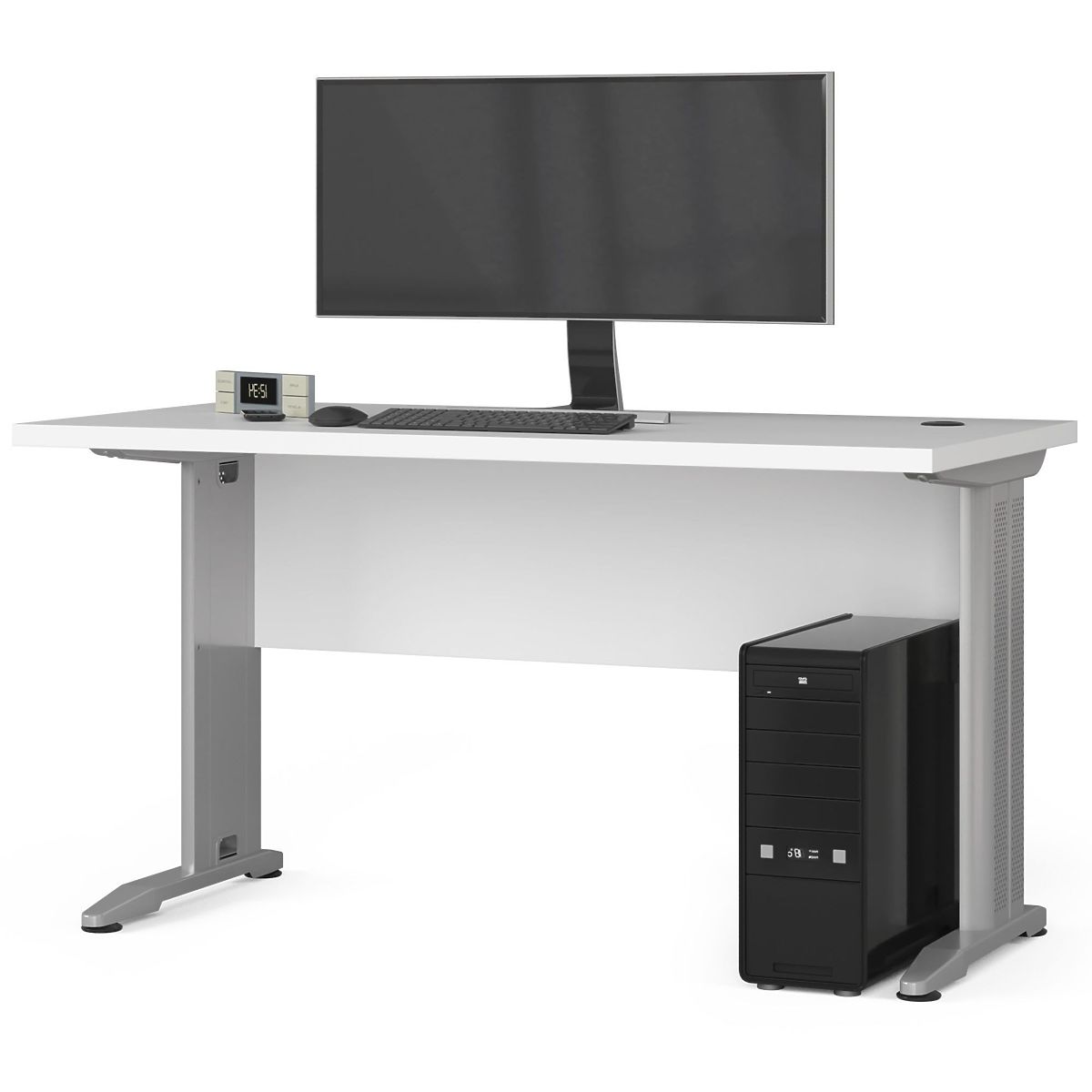 The free-standing BM-135 desk in white is an ideal solution for a computer station in any home or office. The furniture is made of a 32-millimeter thick laminated board that is durable and abrasion-resistant. The visible edges of the desk are equipped with an ABS edge, which also features high resistance to damage. The matte top and back perfectly match the metal legs. If you are looking for a design with a large work surface, we recommend exploring our offer. We guarantee the highest quality, functionality, modern design, and an attractive price. You can customize the desk with additional office furniture available in our online store. We hope it meets the expectations of even the most demanding customers. The desk is easy to clean, and its simple yet elegant form gives the furniture a timeless and universal character.