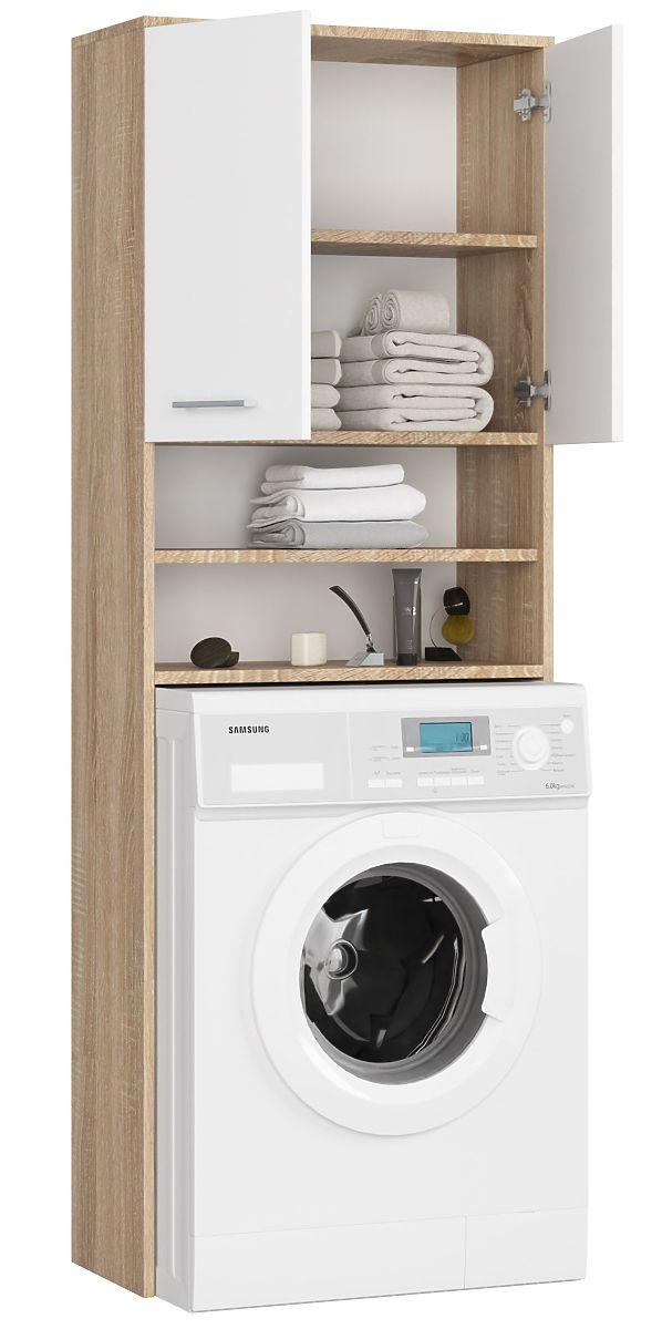 Bathroom cabinet above washing machine with Sonoma oak and white finish. .. more