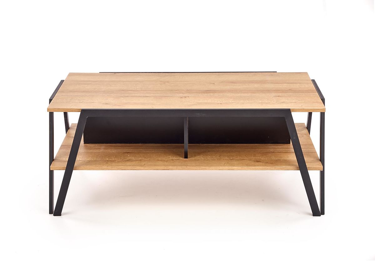 The Volta Coffee Table is an ideal choice for modern living rooms and offices, especially in larger spaces where its clean design and thoughtful execution stand out. It combines minimalist aesthetics with industrial elements and offers ample storage space for everyday use. The table is equipped with both upper and lower shelves, providing practical space for books, decorations, magazines, and refreshments. The structure stands on sturdy legs made of black powder-coated steel, ensuring high stability and long-lasting durability. The shelves are made of veneer MDF in a golden oak finish, adding a warm and elegant look to the interior. A load capacity of 30 kg for both the upper and lower shelves ensures hassle-free everyday use.