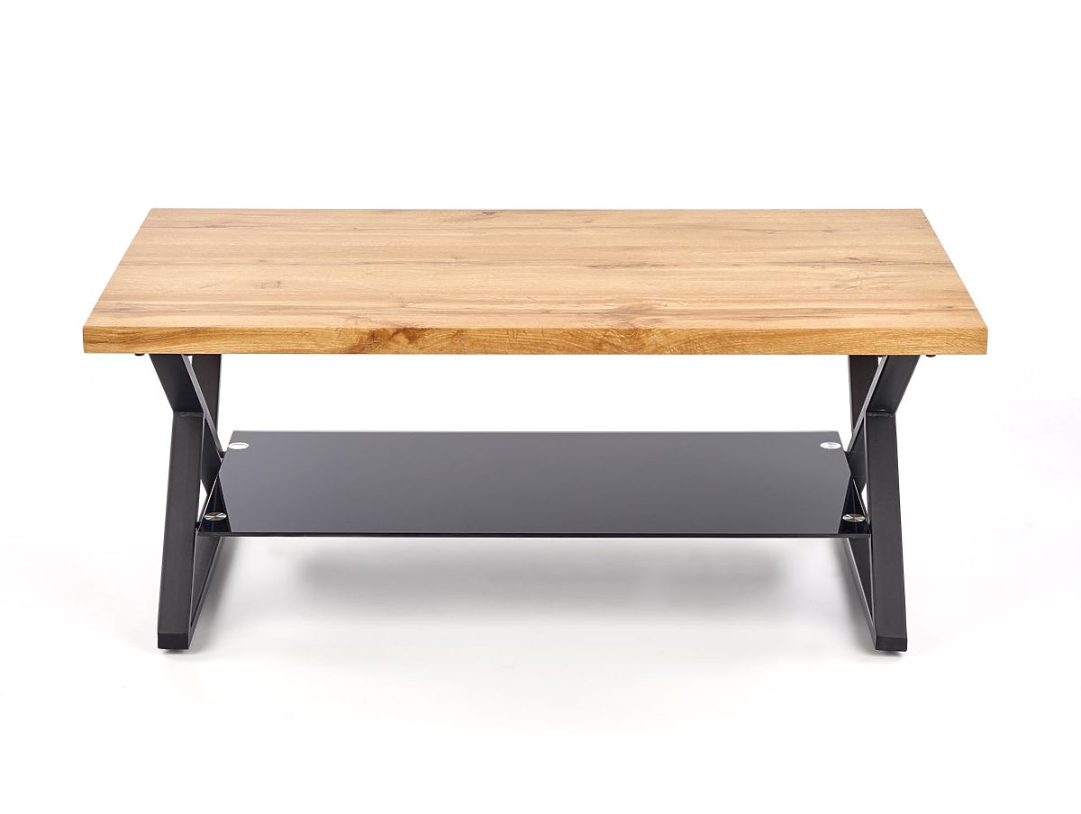 XENA Coffee Table will immediately catch your eye with its minimalist yet elegant design. The tasteful combination of natural oak and black elements creates a modern look that perfectly complements a living room, study, or relaxation area. The table appears light, timeless, and easily matches with other furniture in industrial, Scandinavian, and modern styles. The top is made of laminated MDF in a natural oak finish, making it not only aesthetic but also resistant to everyday use. The stable construction of powder-coated steel gives the table strength and a modern industrial touch. A practical glass shelf under the top is an ideal place to store magazines, remotes, or decorations, keeping the main surface perfectly tidy.