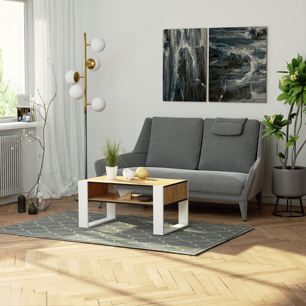 Craft oak and white coffee table with a functional design and additional shelf. .. more