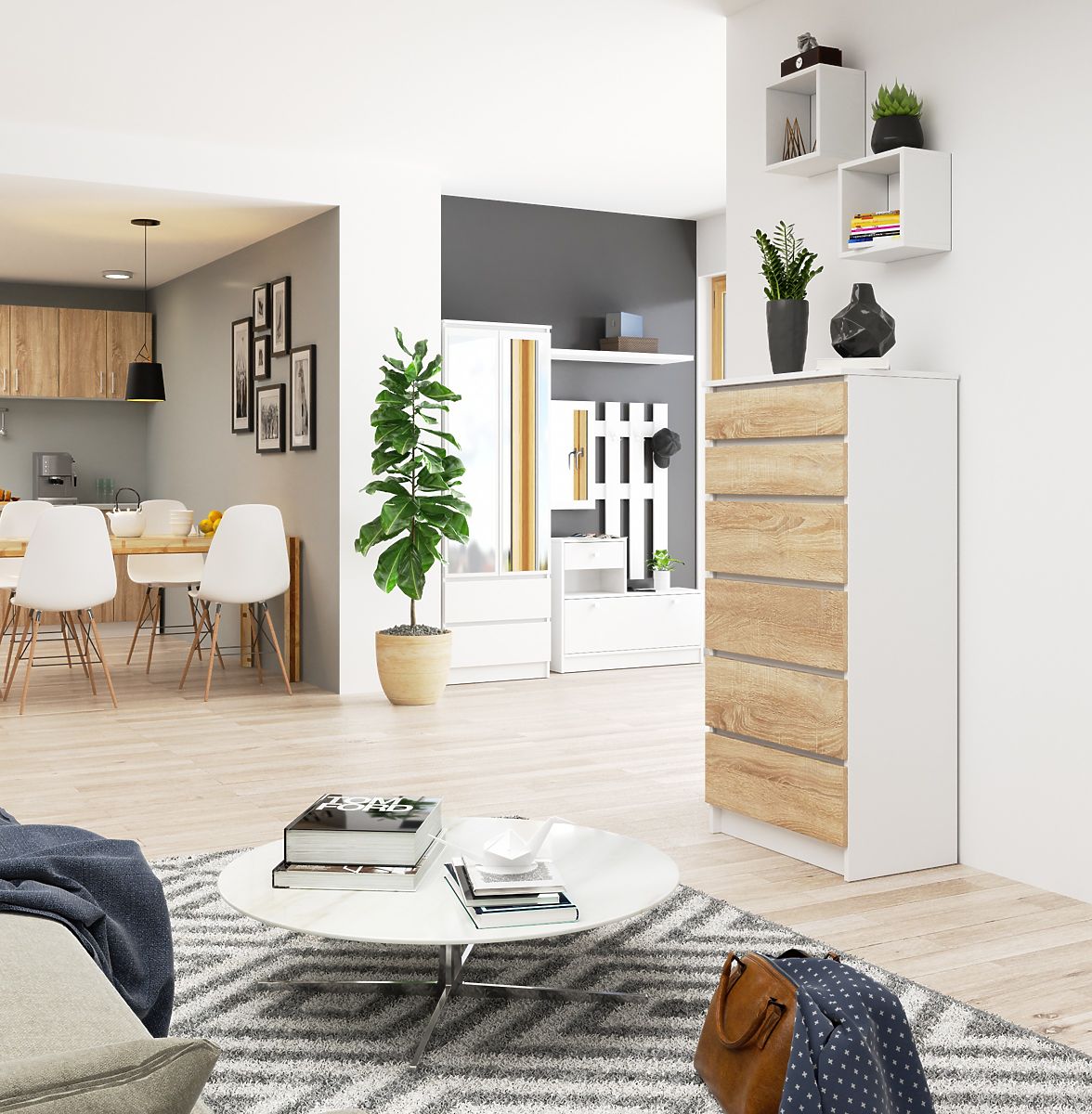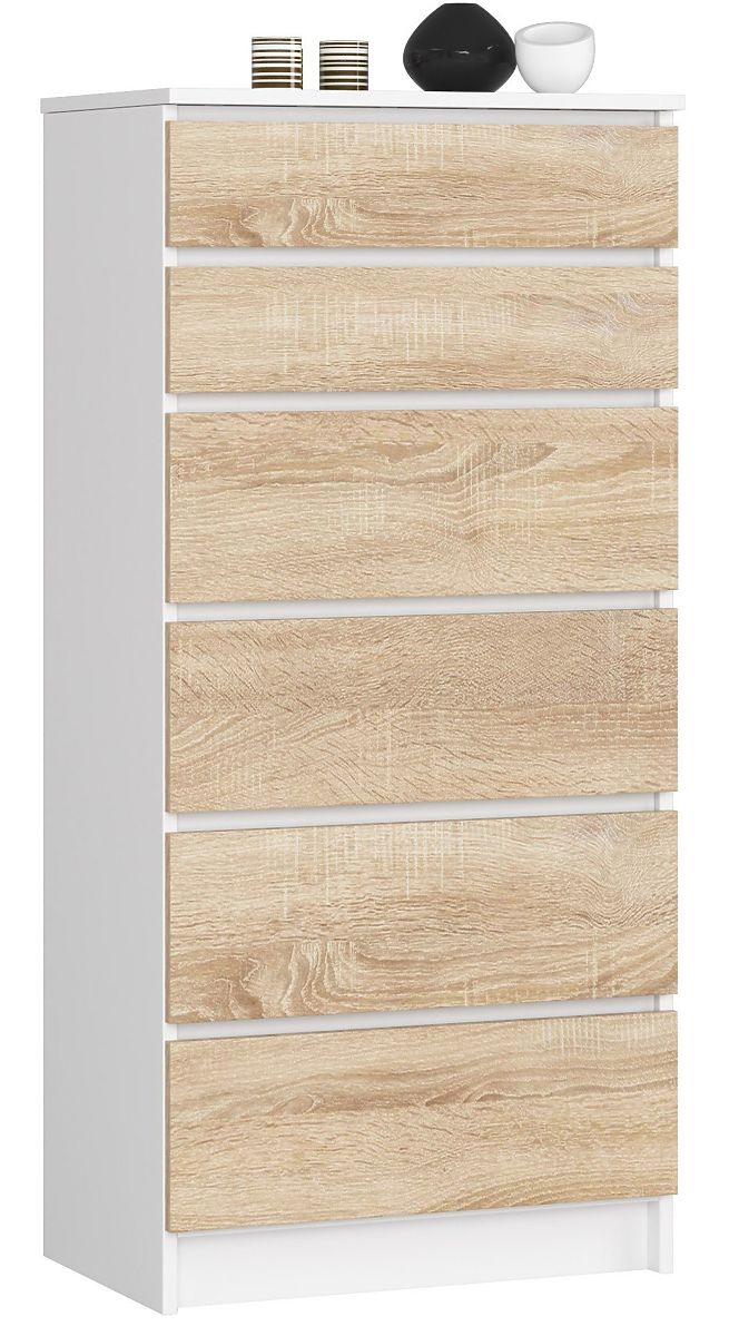 Dresser with 6 drawers in white and Sonoma oak finish. .. more
