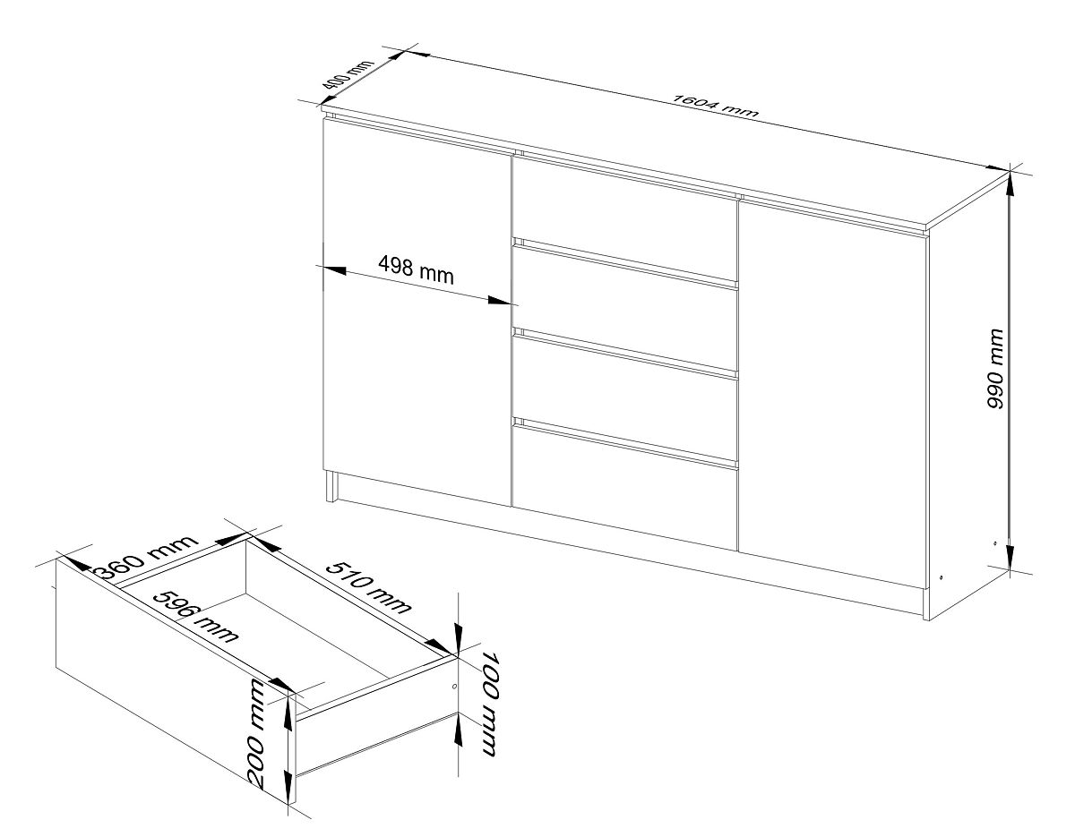 SIDEBOARD K160 2 DOORS 4 DRAWERS