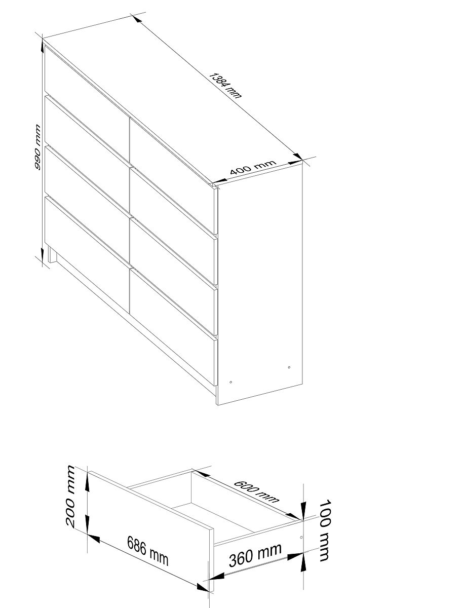 CHEST OF DRAWERS K140 8 DRAWERS