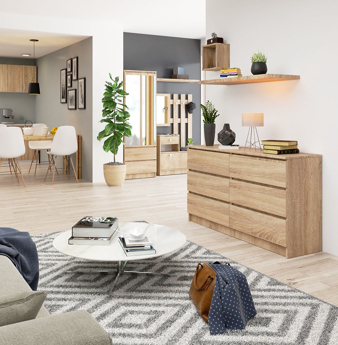 Six practical drawers, a long top, and a color that is highly favored by those who prefer easy-to-clean, versatile, and timeless furniture - these are the features that characterize the K140 dresser in oak sonoma color. This offer deserves attention primarily due to its design and exceptional functionality, but it's also worth noting the high quality and meticulous craftsmanship of the furniture, which can be successfully used in office spaces, living rooms, dining rooms, bedrooms, or many other residential interiors. The solid construction from durable materials will surely be appreciated by even the most demanding customers, for whom the favorable price of the furniture will also be an advantage.