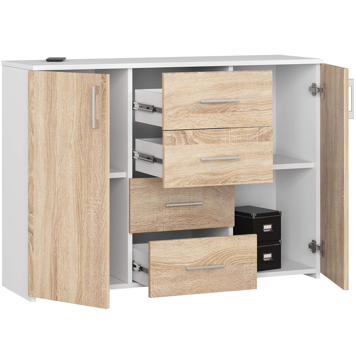 White and Oak Sonoma chest of drawers with 4 drawers and 2 doors. .. more