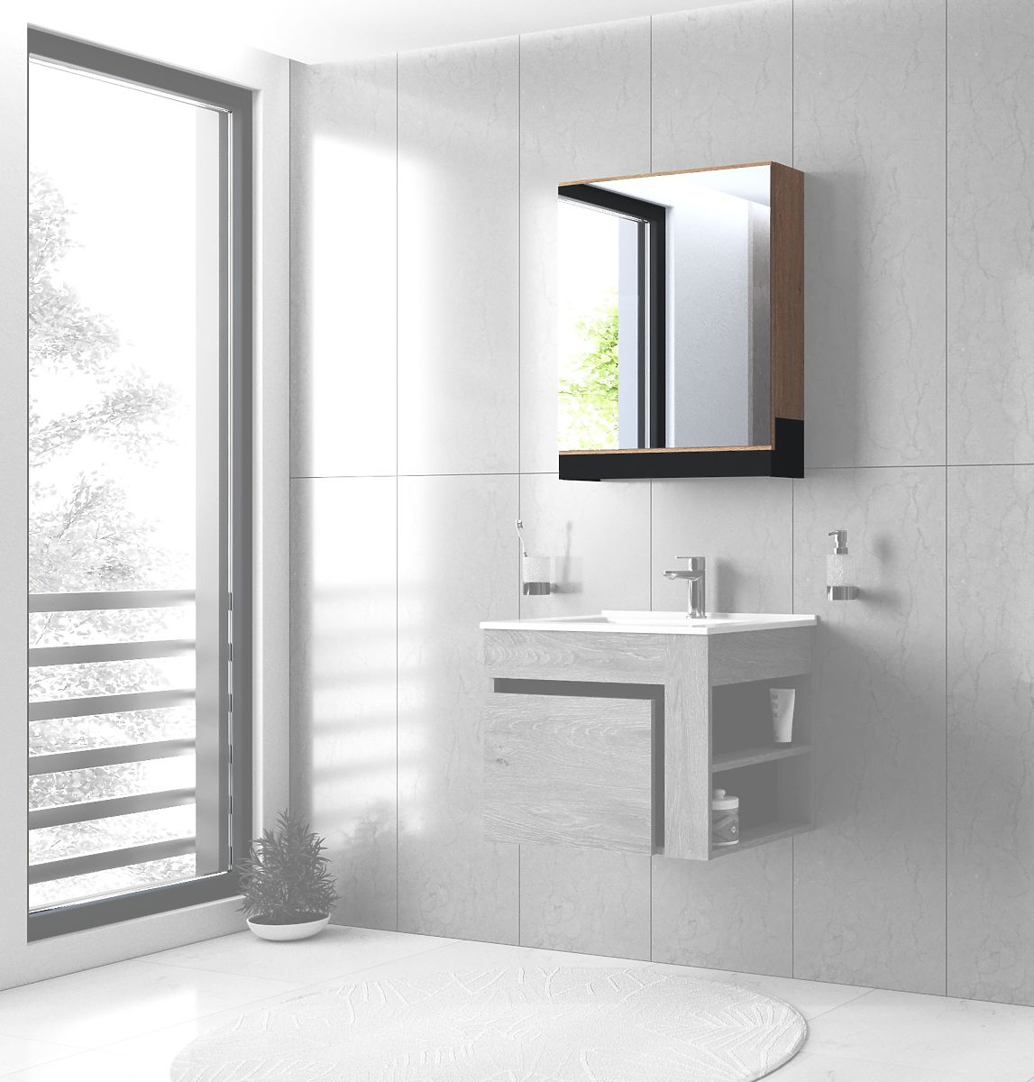 DUESA Vanity Cabinet is the perfect choice for any modern bathroom that emphasizes functionality, order, and natural design. With its compact dimensions, it fits perfectly under most sinks with a width of 60 cm and offers practical storage space for everyday needs. The interior layout combines a drawer and open shelves, allowing for organized storage of cosmetics, towels, or cleaning supplies. The cabinet is made of quality wood in a white oak finish, giving the bathroom a pleasant, natural look while ensuring long-lasting durability even with daily use.