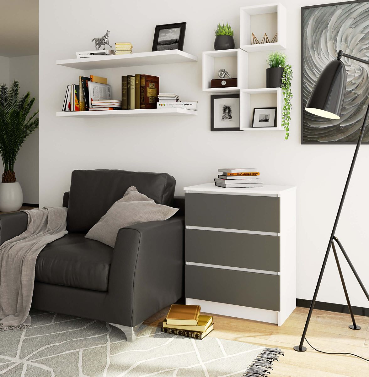 Lukahome.co.uk   »   Furniture   /   Chests of drawers   /   CHEST OF DRAWERS K60 3SZ CLP WHITE / GRAY