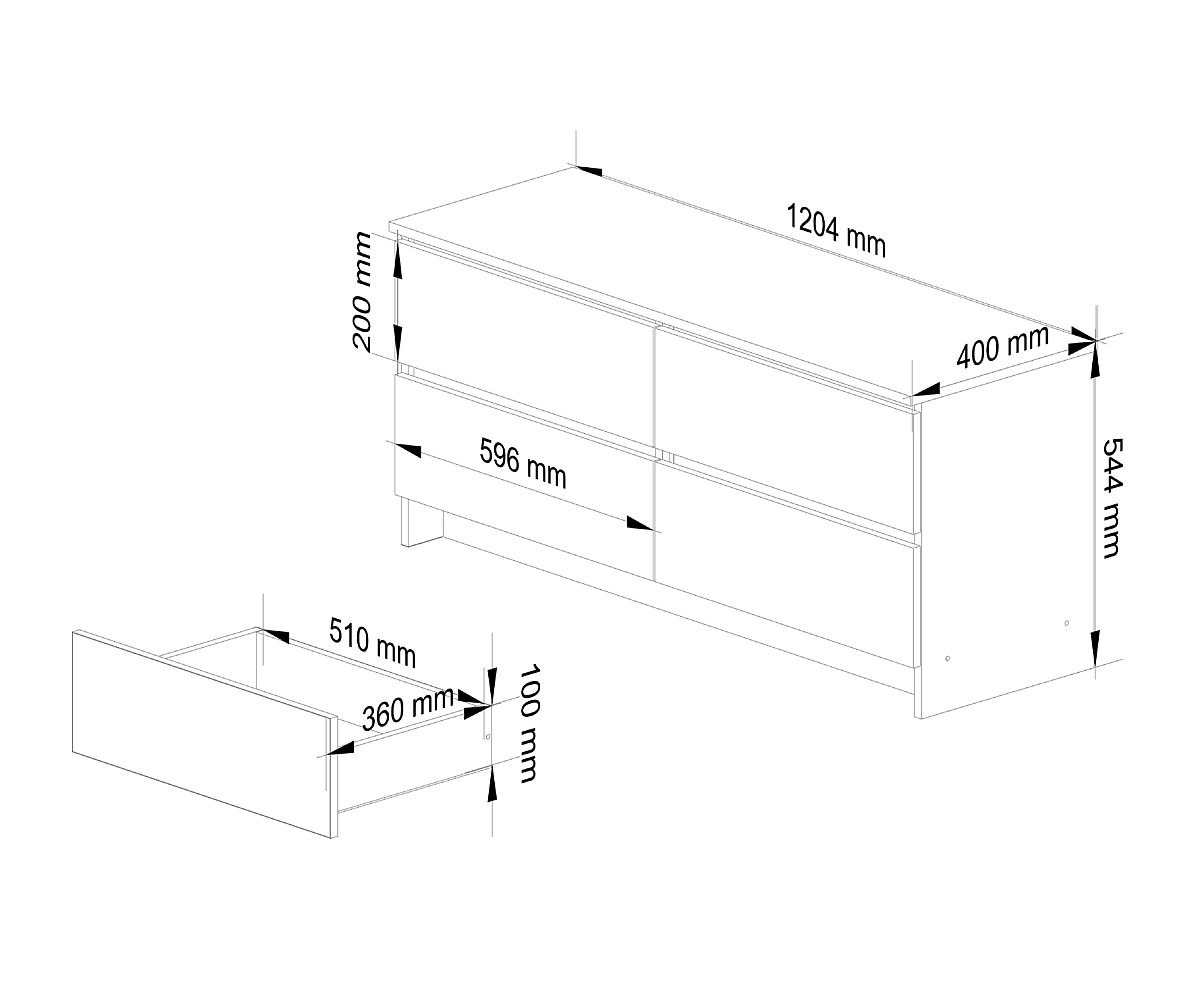 Oak Artisan chest of drawers with four drawers and ABS edges. .. more