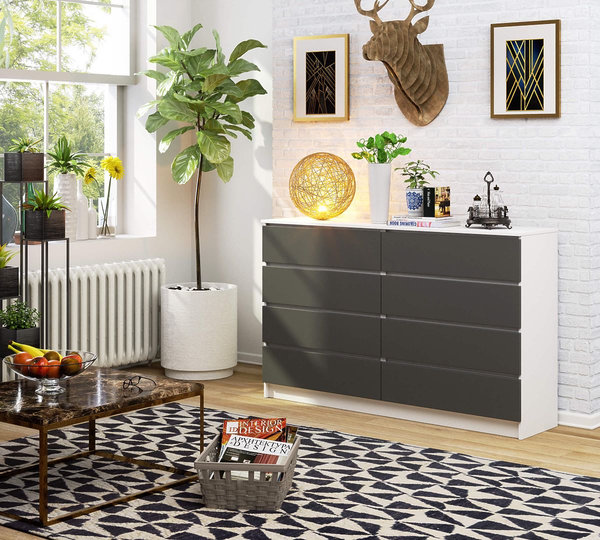 - The body of the chest is made from white matte 16mm abrasion-resistant laminated board