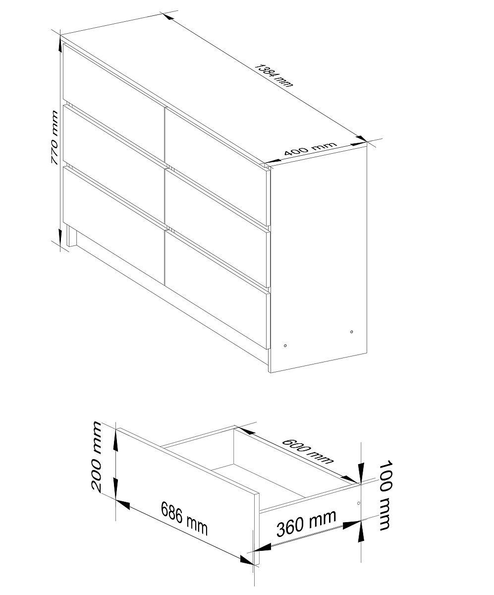 Oak Craft sideboard with 6 drawers and ABS edges. .. more