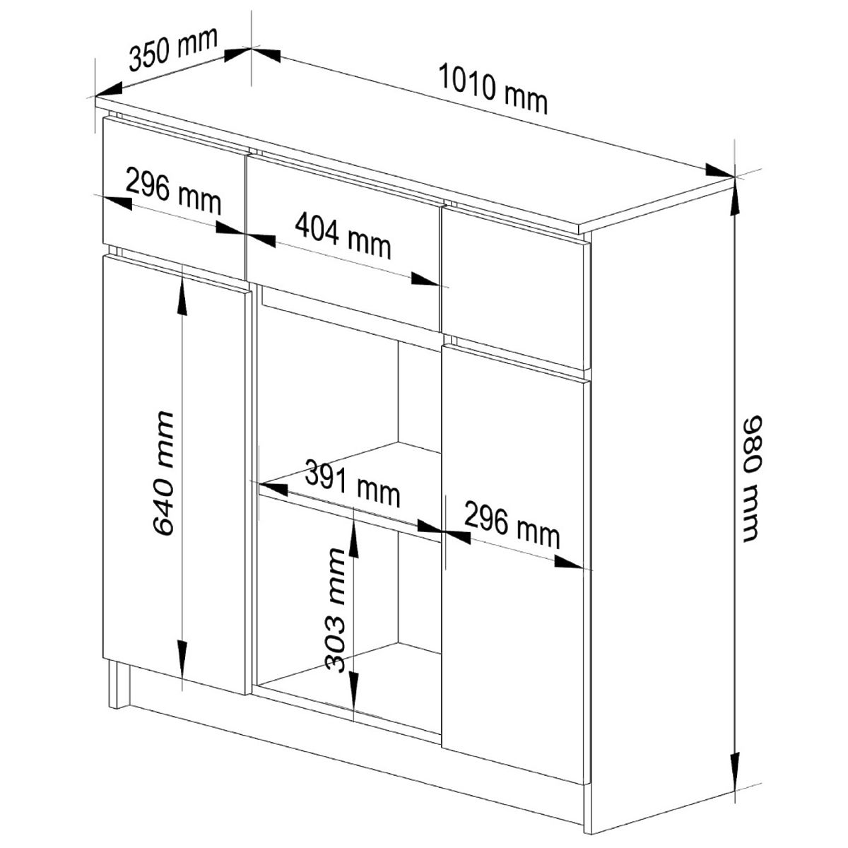 Depth - 35cm- Sideboard made from abrasion-resistant laminated board