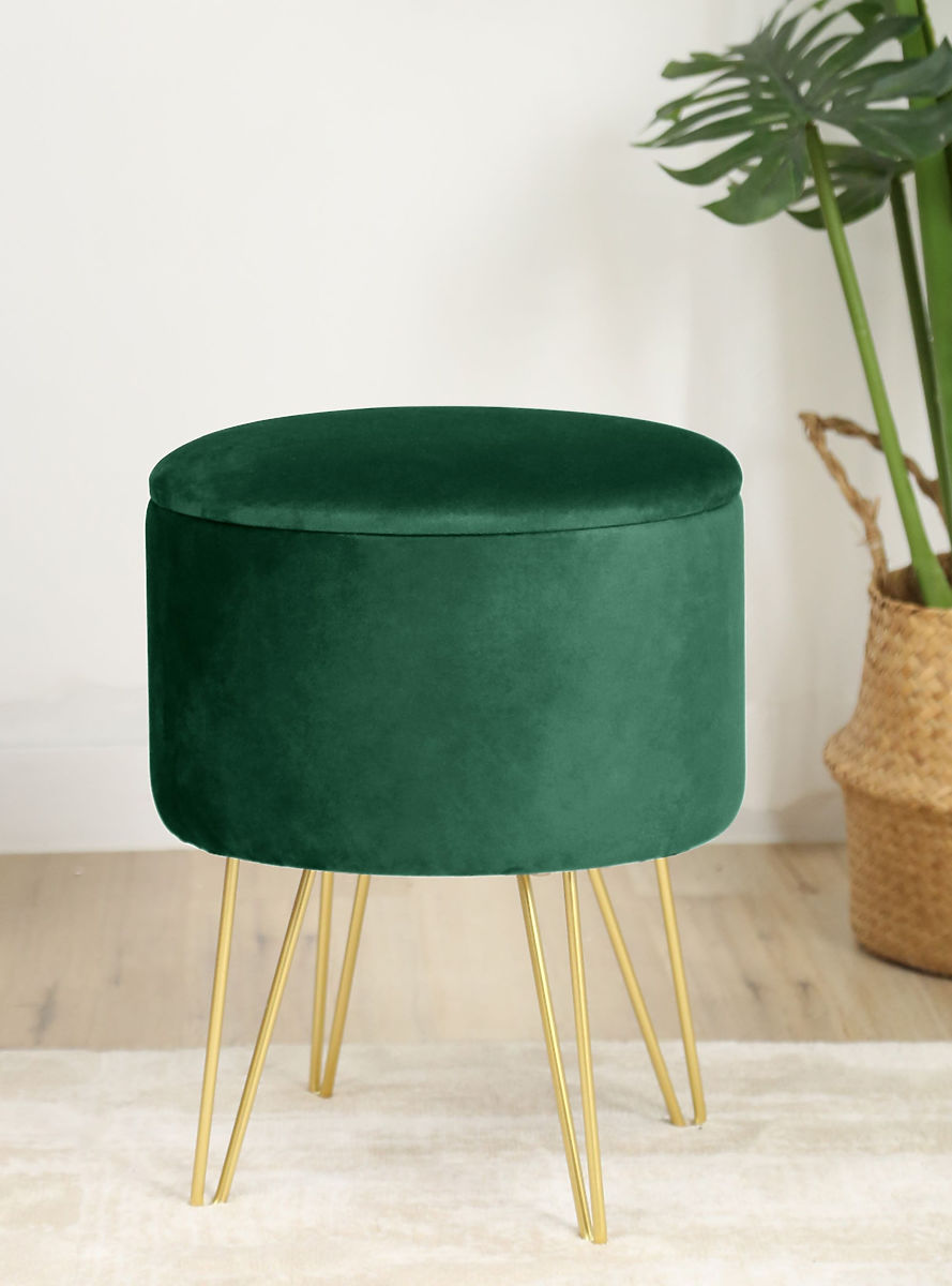 Pouf with storage and golden metal legs in bottle green. .. more