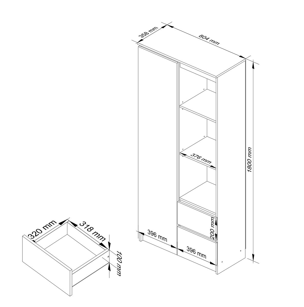 - The shelf is made of 16mm laminated board from Kronospan, resistant to abrasion