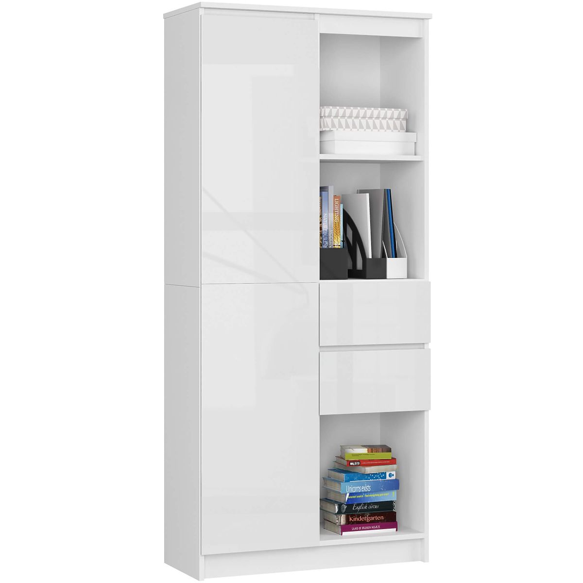 White office shelf with gloss finish and multiple shelves. .. more