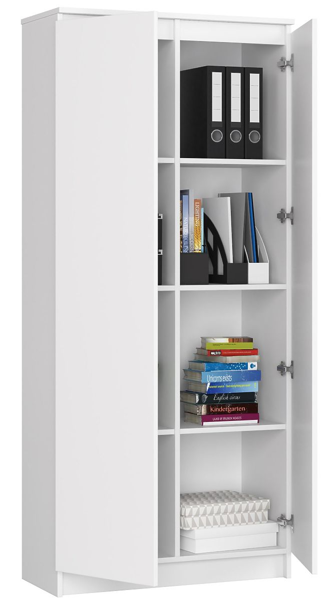 In an office space, it's extremely important for everything to have its place. If you don't know where to store bills, folders, and documents, unnecessary chaos creeps in. A great way to prevent this is with a modern white office cabinet. It features eight spacious shelves that comfortably fit all important items, and the doors protect them from unnecessary dust. The furniture is made from durable laminated board, ensuring longevity and long-term use. The 80cm office shelf combines charm and elegance. Its classic appearance fits perfectly into modern, minimalist spaces, but will also match somewhat more extravagant interiors. Our office cabinet is increasingly chosen not only by entrepreneurs but also by individual customers who appreciate its functionality and high aesthetic values. Combined with an attractive price, it makes the perfect piece of furniture.