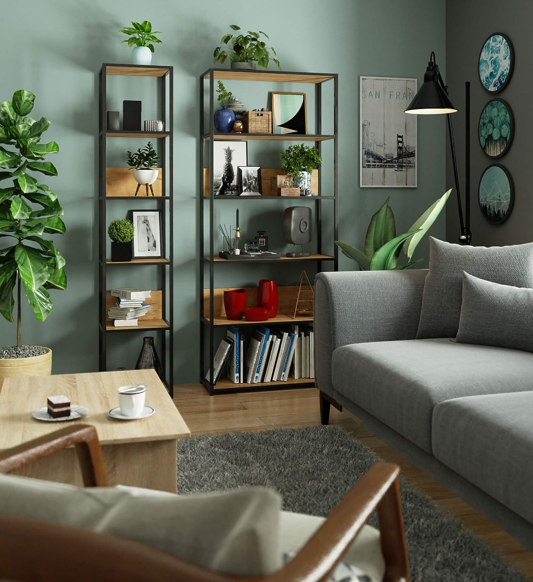 - Elegant appearance: characterized by a simple form, the frame is black, while the shelves are in craft oak color,