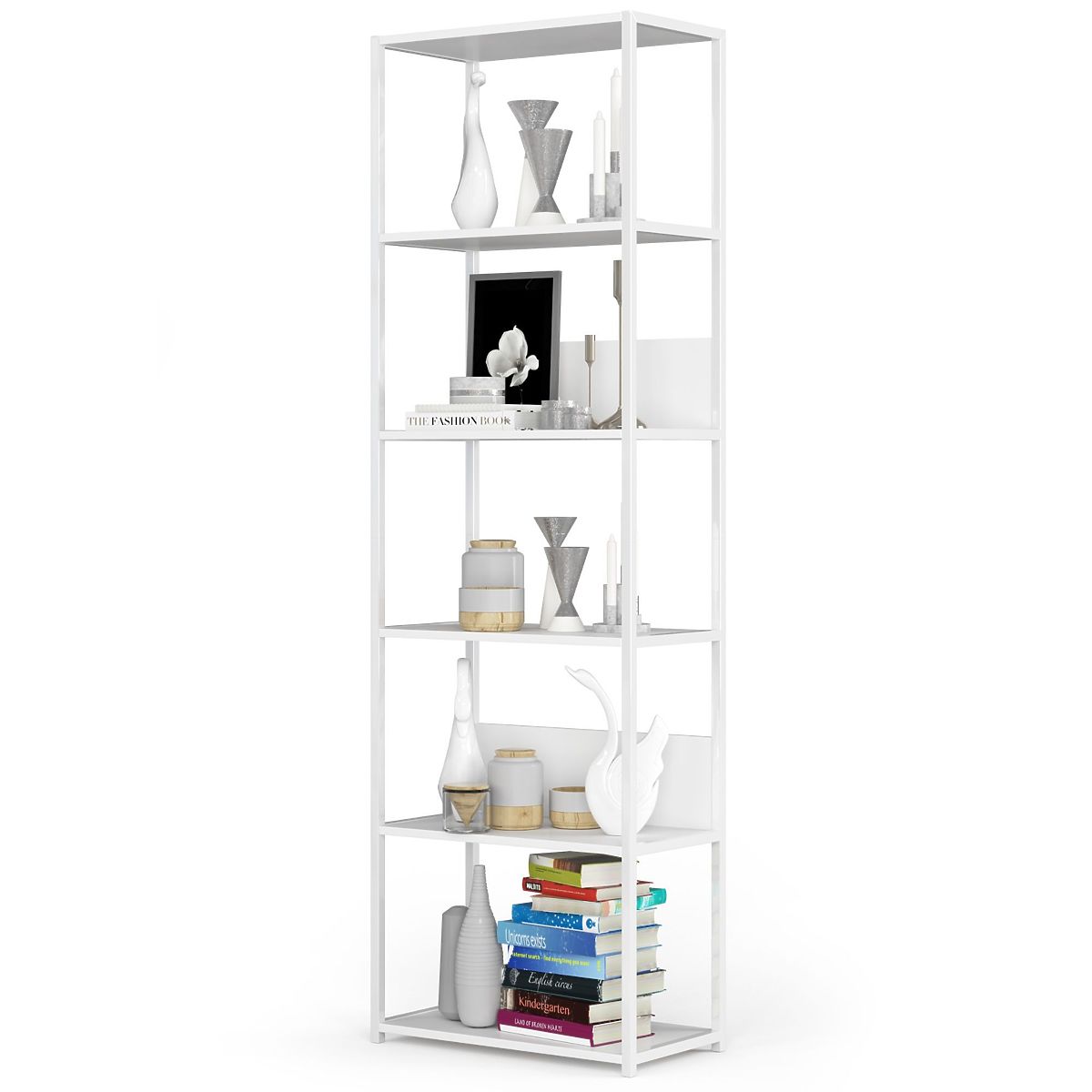 - Elegant appearance: characterized by a simple form, with a white frame and white shelves,